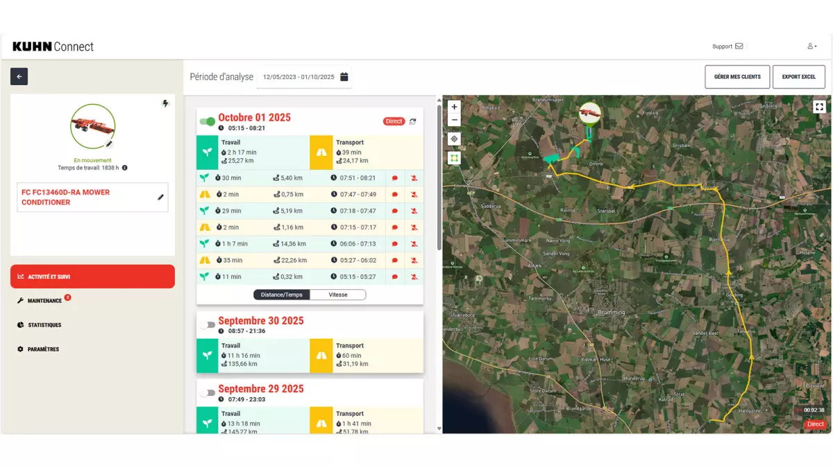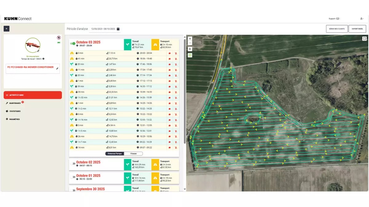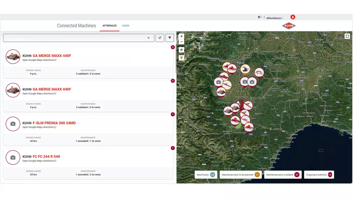 En se connectant à votre compte MyKUHN et en accédant à la page « KUHN Connect - Mes machines connectées », retrouvez toutes vos machines.