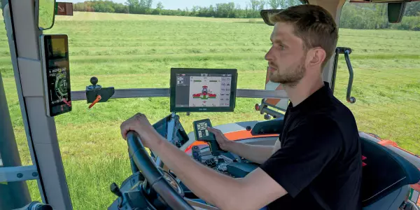 KUHN propose également un joystick de commande ISOBUS, le CCI A3, qui affiche chaque fonction sur un écran tactile, vous permettant d’effectuer ce que vous voyez.