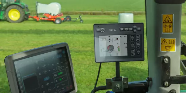 Le nouveau terminal ISOBUS CCI 60 dispose d’un écran de 5,7"/14.5 cm. L’écran couleur et tactile facilite la saisie de paramètres et l’accès aux différents pages du menu. Étant ISOBUS, il est compatible avec les machines ISOBUS certifiée AEF du marché."