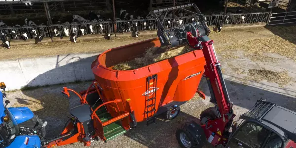Garantes d'une alimentation de qualité, les mélangeuses KUHN réalisent des rations mélangées respectueuses des besoins de rumination du troupeau. La gamme à 1, 2 ou 3 vis verticales se décline en différentes capacités allant de 9 m3 à 45 m3 . Équipées de série d'un dispositif de pesée, les gammes EUROMIX et PROFILE permettent une gestion précise de l'alimentation du cheptel.