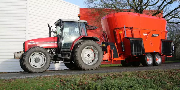 La gamme de mélangeuses traînées PROFILE 2 M à 2 vis verticales est conçue avec une caisse de largeur médium pour une capacité de 16 à 25 m3. Que ce soit une mélangeuse avec une distribution directe ou une distribution transversale, elle peut accueillir une turbine de paillage.