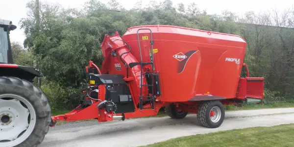 Mélangeuse PROFILE PLUS 2 CS à 2 vis verticales avec turbine de paillage, distribution transversale et caisse étroite. Déclinée de 15 à 20 m3, cette mélangeuse est destinée aux troupeaux de 75 à 150 vaches laitières.