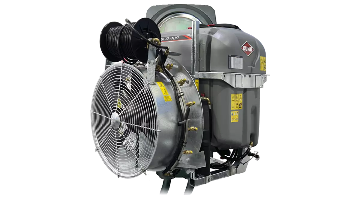 Les pulvérisateurs GEO représentent le haut de gamme des atomiseurs KUHN. Avec une capacité de cuve de 400 ou 600 litres et une turbine ronde de 750 à 900 mm, les atomiseurs portés GEO offrent d'importantes performances en termes de volume d'air.