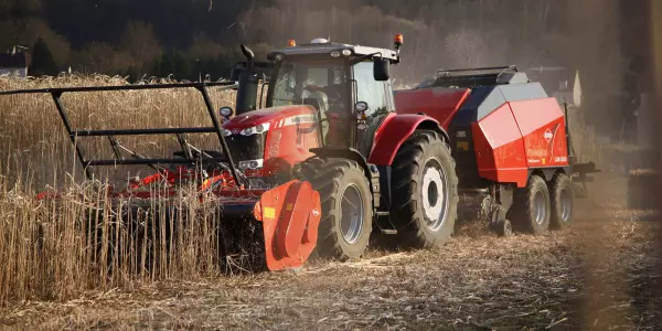Le broyeur WS 320 BIO est spécialisé dans la récolte des cultures énergétiques. Avec une largeur de travail de 3,23 m il permet également le travail en combinaison avec une presse pour une puissance requise de 150 ch.