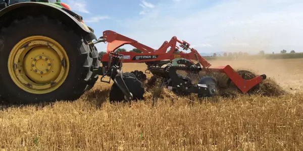 Les déchaumeurs à disques indépendants OPTIMER effectuent un travail superficiel (5 à 8 cm) à médian (8 à 15 cm) avec un débit de chantier élevé jusqu’à 18 ha/h.