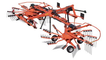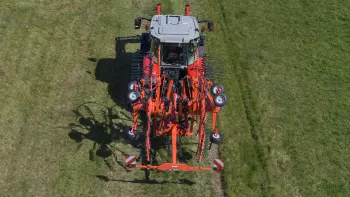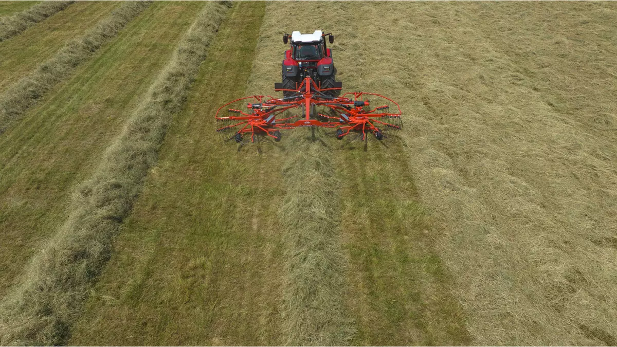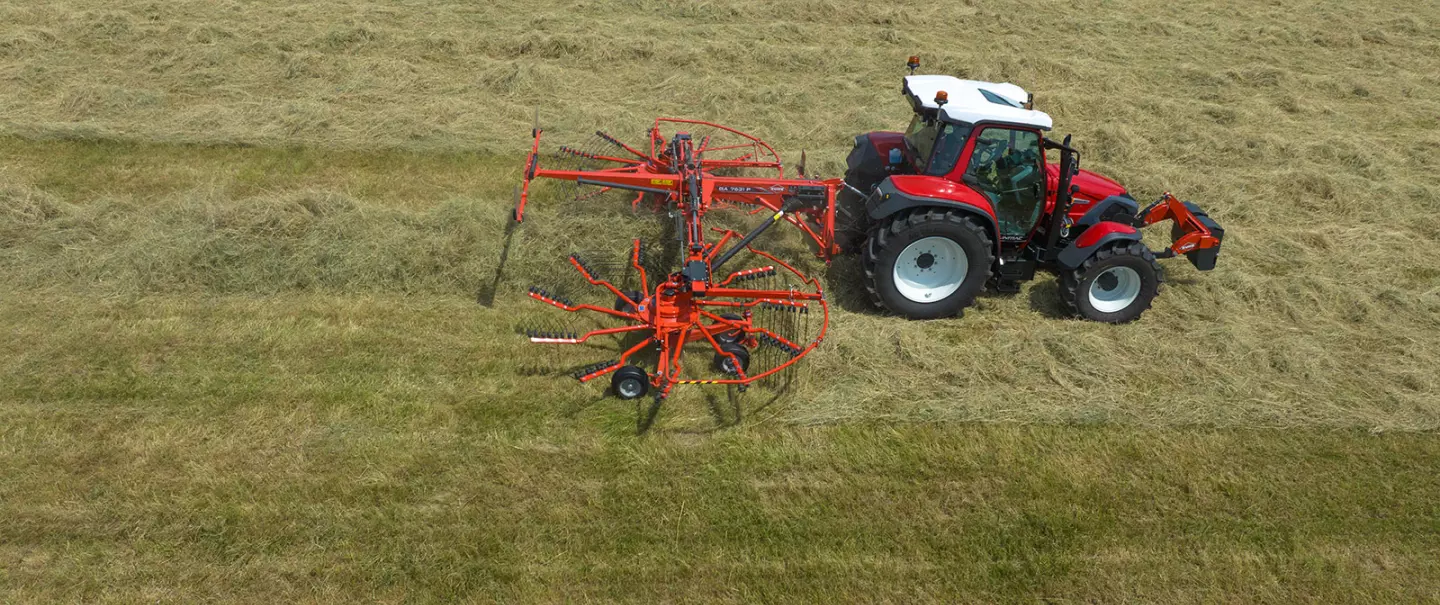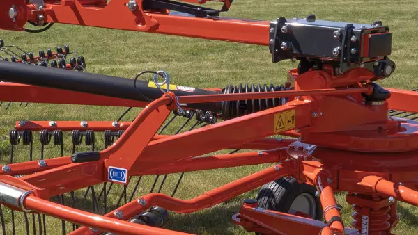 Le passage de la position de travail à celle de transport s'effectue hydrauliquement depuis la cabine, sans avoir à retirer les bras des rotors, ce qui permet de gagner du temps entre chaque parcelle.