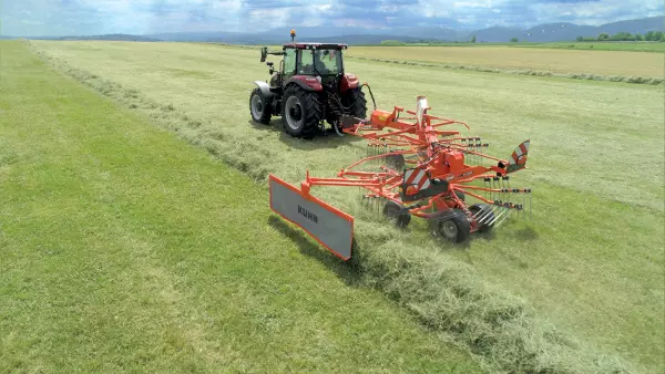 Pour les fourrages très denses ou pour réaliser des andains de nuit, le GA 6002 peut également déposer deux andains à chaque passage.