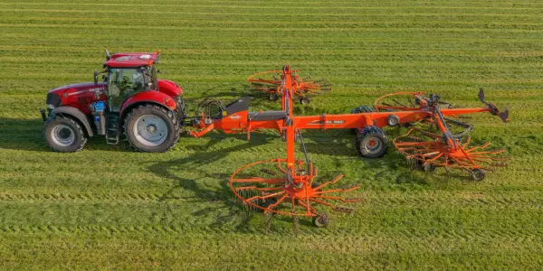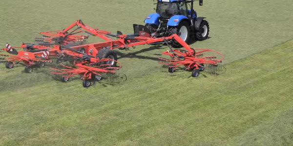 Le nouvel andaineur quatre rotors GA 13031 délivre des andains centraux. Il travaille entre 8,40 m à 12,50 m. Son entraînement 100% hydraulique vous permet de gagner une heure de maintenance par jour.