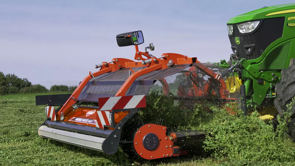 Le tapis du modèle MERGE MAXX 442 F mesure environ 1 m de large, et optimise le transport du fourrage et la formation de l’andain latéral. C'est une bonne solution pour séparer des andains trop volumineux en vue de faciliter le séchage.