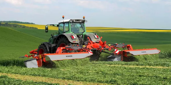 Découvrez la GMD 15030, la faucheuse à disques portée la plus large du marché avec une exceptionnelle largeur de travail de 14,50 mètres.
