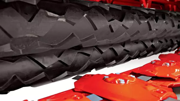 | Doigts mobiles en acier - Tôle mobile de conditionnement réglable en 5 positions par levier | 2 rouleaux SQUAREFLEX en polyuréthane, avec double entraînement et synchronisés | Doigts mobiles en acier - Tôle mobile de conditionnement réglable en 5 positions par levier | 2 rouleaux SQUAREFLEX en polyuréthane, avec double entraînement et synchronisés | Doigts mobiles en acier - Tôle mobile de conditionnement réglable en 5 positions par levier | 2 rouleaux SQUAREFLEX en polyuréthane, avec double entraînement et synchronisés |