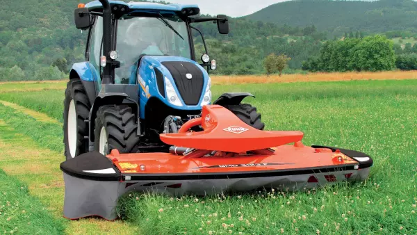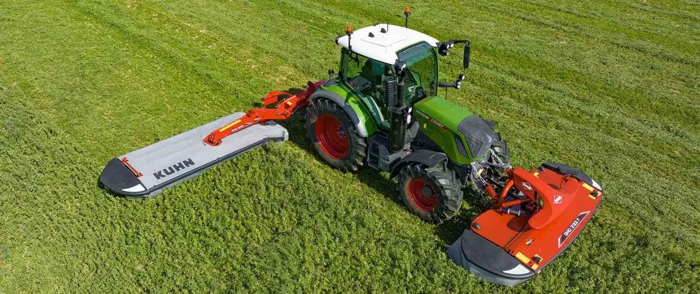 - Un angle de piquage plus faible : en fauche rase, ceci évite un profil de fauche aux ondulations typiques. Cette évolution favorise aussi une repousse homogène et plus rapide et un réglage plus aisé des machines suivantes.