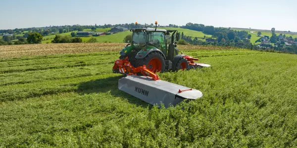 Les faucheuses à disques GMD 3515 et GMD 4015 travaillent respectivement des largeurs de 3,50 et 3,95 m. Elles sont destinées aux exploitations à forte dominante fourragère. Elles peuvent être combinées avec une faucheuse frontale et se replient à 125° en position transport.