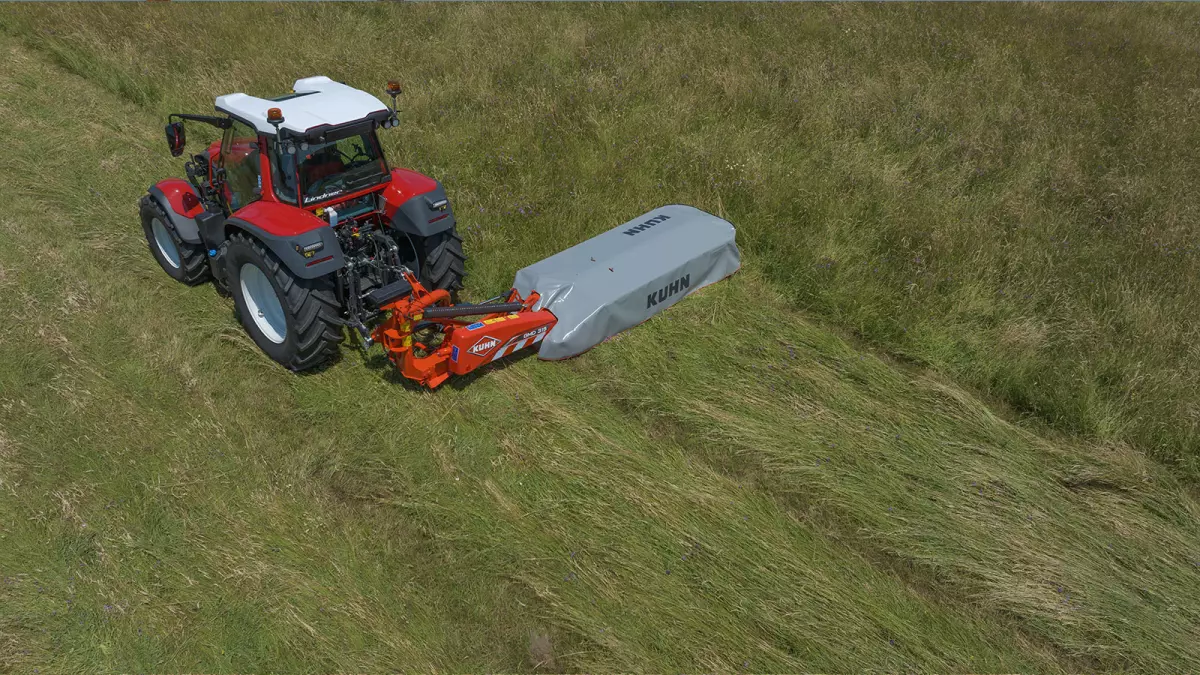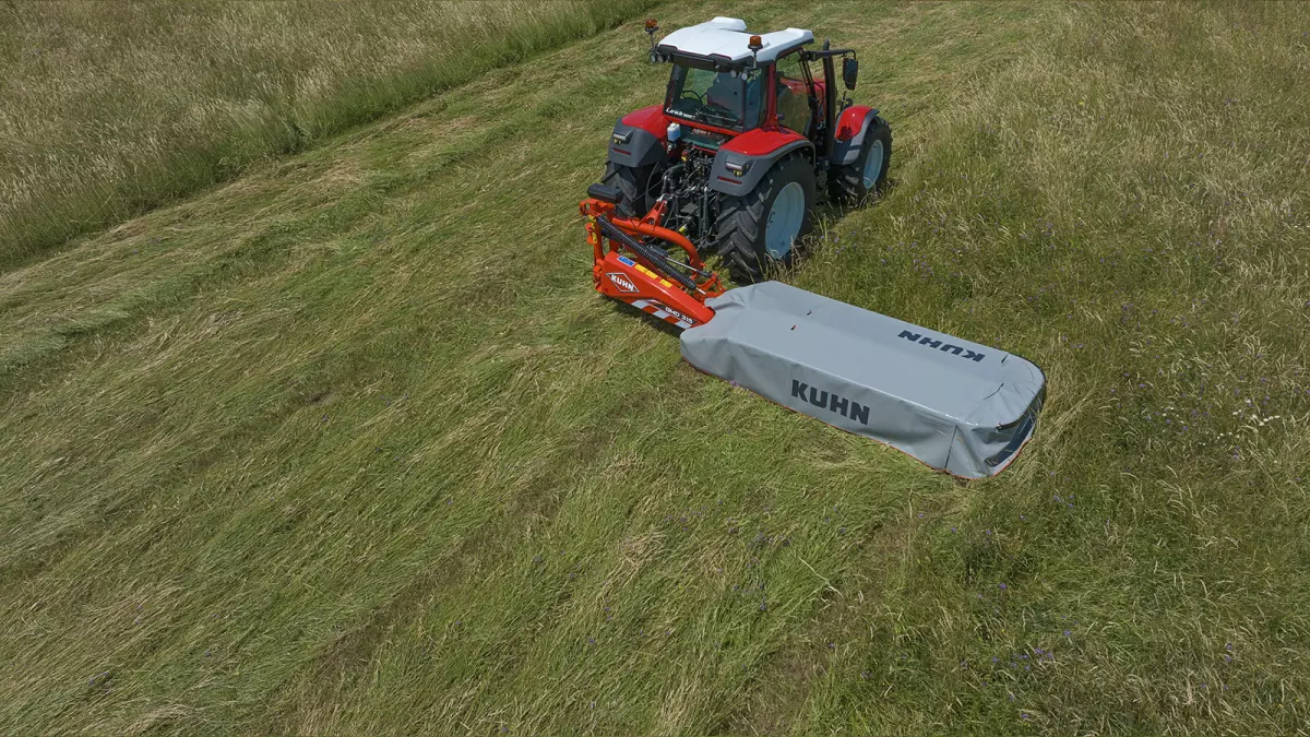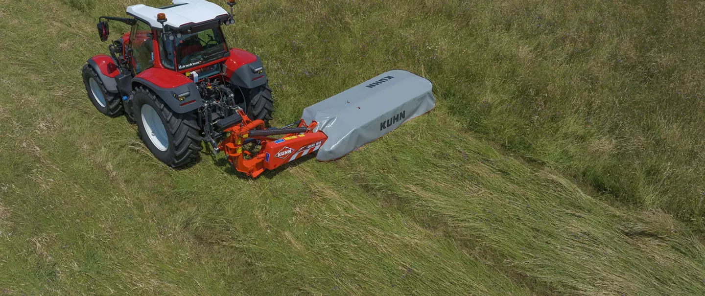 La nouvelle cinématique d'allègement CONSTANT FLOAT procure au groupe de fauche un allégement digne des machines à articulation pendulaire. Elle vous assure une excellente stabilité avec une hauteur de coupe régulière, même à vitesse élevée, et un bon suivi du relief. Le tapis végétal sera préservé même en conditions humides. Le réglage de l’allégement est simple et rapide: aucun outil n’est requis.