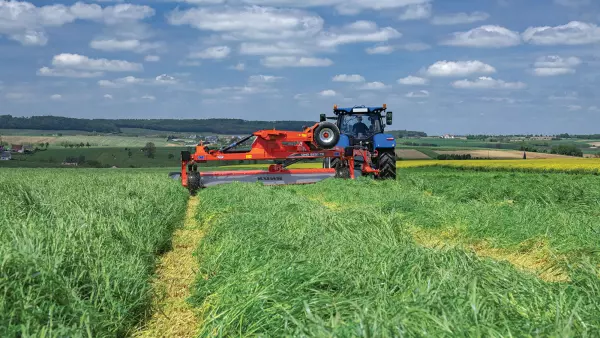 - Un angle de piquage plus faible : en fauche rase, ceci évite un profil de fauche aux ondulations typiques. Cette évolution favorise aussi une repousse homogène et plus rapide et un réglage plus aisé des machines suivantes.