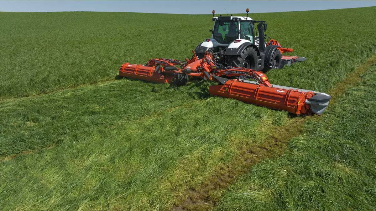 Conçue avec deux vis de groupage de grand diamètre (Ø500 mm) tournant à une vitesse de 900 tours/min, la GMD 9530 RV garantit une capacité de travail élevée, même dans des fourrages volumineux.