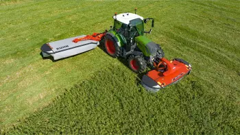 - Un angle de piquage plus faible : en fauche rase, ceci évite un profil de fauche aux ondulations typiques. Cette évolution favorise aussi une repousse homogène et plus rapide et un réglage plus aisé des machines suivantes.