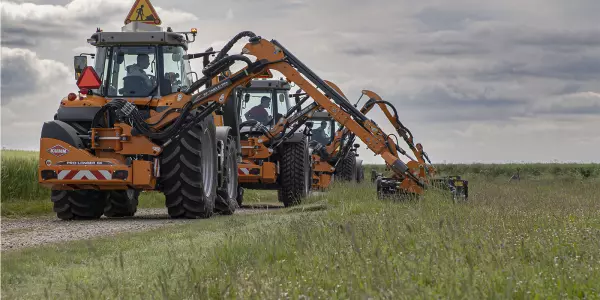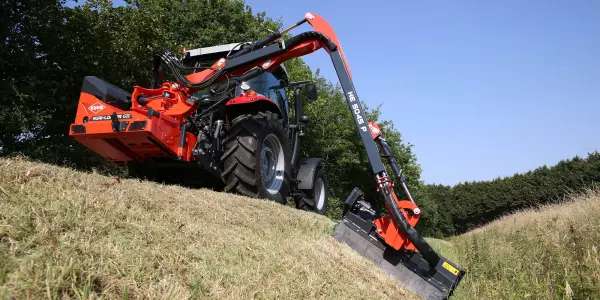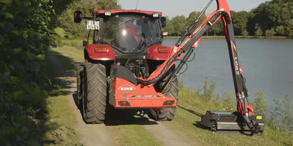 Pour un usage jusqu'à 100 h/an, KUHN a développé les Faucheuses Débroussailleuses AGRI-LONGER GII à Sécurité Mécanique avec une portée horizontale de 4,20 m et 4,70 m et une puissance disponible du circuit rotor de 45 ch.