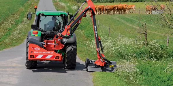 Pour un usage jusqu'à 800 h/an, KUHN a développé les faucheuses débroussailleuses MULTI-LONGER GII d'une portée horizontale de 5 m à 5,70 m avec une puissance disponible du circuit rotor de 57 ch.